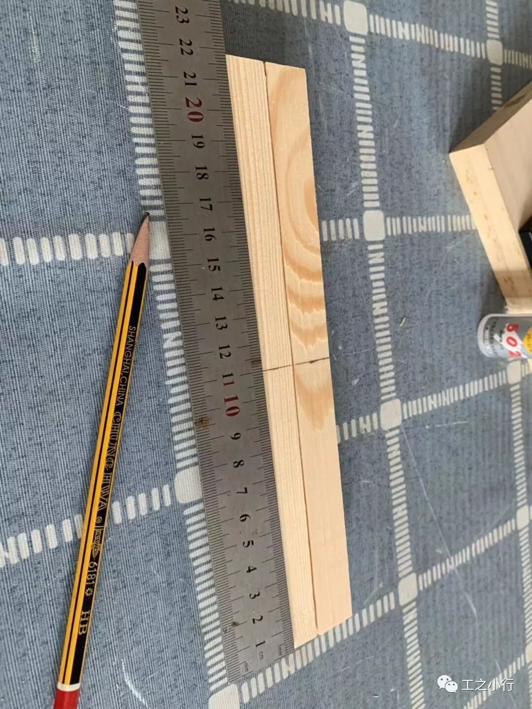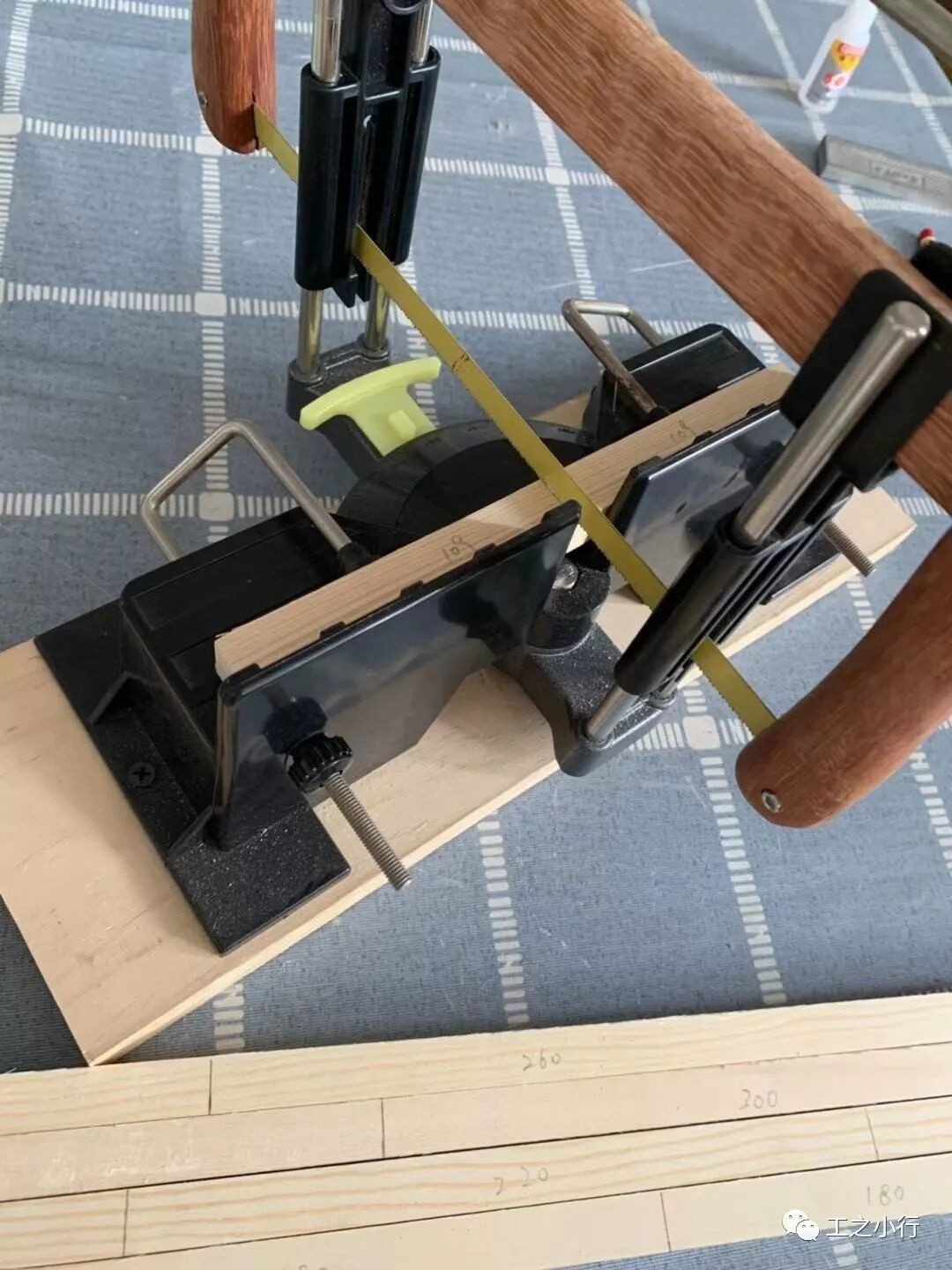 首先呢准备好需要用到的材料及器材。安全手工锯、磨床、铅笔、角度尺、15*15mm木方。
